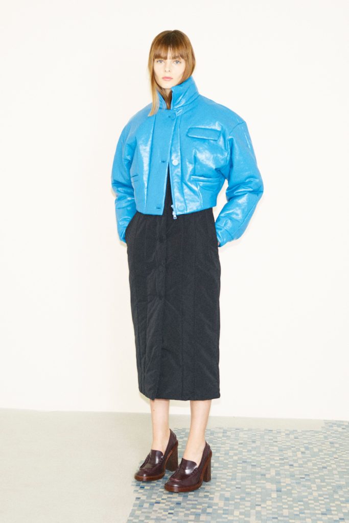 Но длина мини не единственное, что сохранит свою актуальность осенью. На показах Fall 21/22 мы заметили главную it-вещь 2020 года – трикотажные жилеты. Но если раньше мы носили их в дуэте с пиджаками с мужского плеча и оверсайз рубашкой, то Apiece Apart предлагает составить трендовый образ с водолазкой, а Bevza – с плиссированной юбкой и кожаными сапогами.