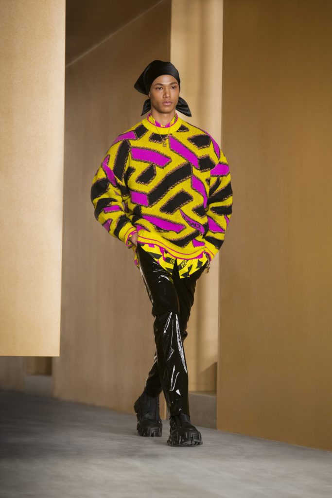 Пожалуй, среди фаворитов всех мировых дизайнеров можно смело выделить трикотаж. И в новом сезоне тренд достигает своего максимума, появляясь почти в каждом образе на подиуме. Например, Versace предлагает перенестись в прошлое и примерить растянутый свитер, который раньше мы могли бы надеть разве что на даче. А Prada делает ставку на безразмерный кардиган в ретро-стиле. Не осталась без внимания и коллекция Kiko Kostadinov: дизайнер смело миксует полосатое трикотажное платье с яркими брюками прямого кроя.