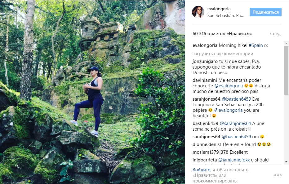 Держать себя в хорошей форме Еве Лонгории (42) также помогает хайкинг: горные пейзажи и слова любви к подобным прогулкам появляются на ее страничке нередко.