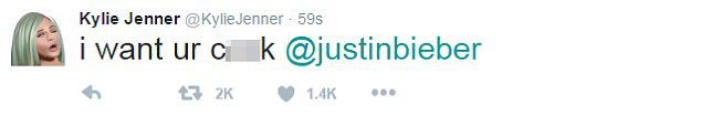 А уже через несколько минут в Snapchat Кайли появились ее фото в нижнем белье. А еще через некоторое время в Twitter (якобы от лица Кайли) появлялись очень странные посты: «Я хочу твой кокаин, Джастин Бибер»; «Секс с моим бывшим Тайгой (27) был просто трэшем»; «Мне так нравится быть знаменитой без таланта».