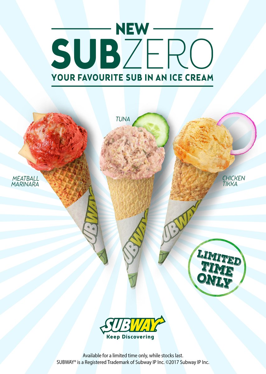 А вот Subway выбрал очень странный прикол — так сказать, на любителя деликатесов. Они сообщили, что в продажу поступит мороженное со вкусом жареной курочки, фрикаделек и тунца. Интересно, кто-нибудь рискнул бы попробовать?