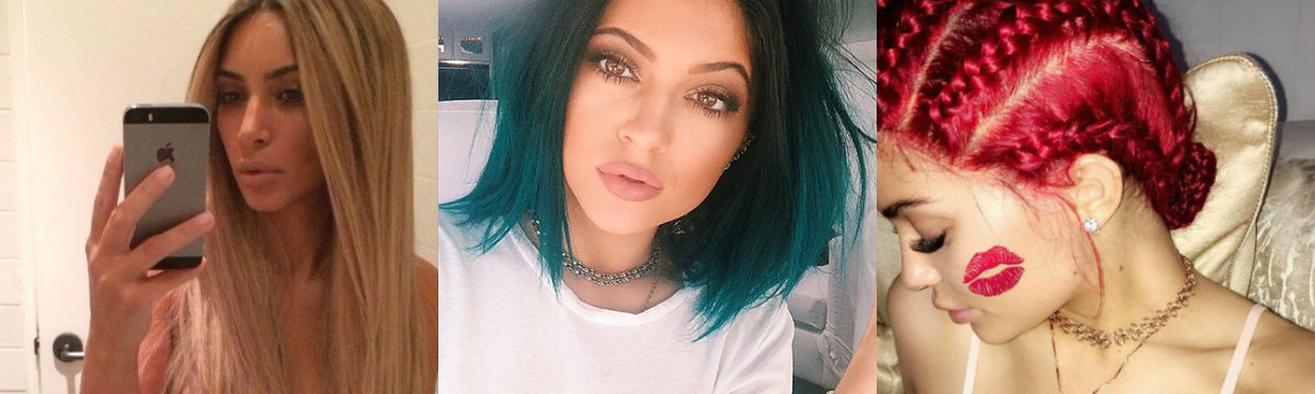 Из брюнетки в блондинку, а потом еще и цвета добавить – красные волосы или голубые кончики волос. Сестры Кардашьян доказали, что менять имидж три раза в неделю − это возможно (конечно, с такой-то командой стилистов). Подозреваем, что это все легендарная коллекция париков, но смотрится эффектно. Поклонницы с радостью повторяют звездные прически.