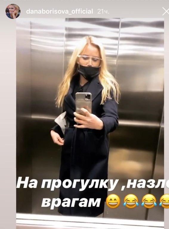 Поводом для таких предположений стали Stories, которые Дана выставила после выпуска шоу: «Рассчитываю, что появлюсь и в завтрашнем выпуске». А после она выложила в соцсети селфи в зеркале лифта с подписью: «На прогулку. Назло врагам».