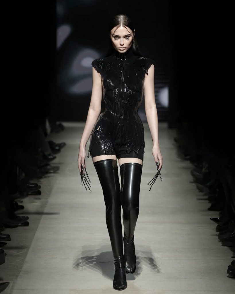 Показ IMKMODE на Московской неделе моды весной прошлого года остался незаслуженно незамеченным. Обилие черного, сложные формы, нестандартные прически, макияж и кастинг моделей. За стилизацию отвечала София (gracefuldrama). Она добавила шоу самобытности, сексуальности и собственного видения, не смещая фокус с синергии форм, материалов и авторского геометрического почерка бренда.