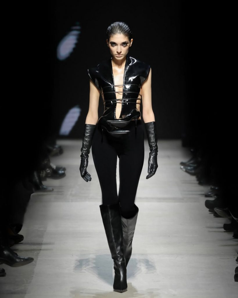 У бренда Raga Malak пока не было громких показов, но пройти мимо него невозможно. Основатель и стилист бренда – Гадир Раджаб. Именно он сделал из Бьянки Цензори ту, о ком говорят все и которой вдохновляются ведущие модные дома. Она носила одежду его бренда, он создавал для нее кастомные наряды и занимался ее стилизацией, совмещая это с ведением собственного бренда и выпуском сезонных коллекций. Похоже, он предпочел скандальные выходы Бьянки строгим подиумам – и понятно почему.