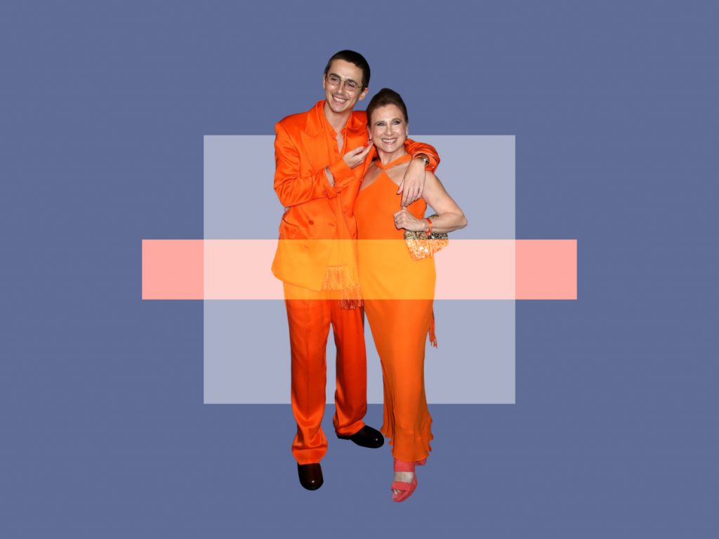 Беда пришла откуда не ждали: Тимоти Шаламе нашел замену Кайли на очередной ковровой дорожке премьеры фильма «Марти Великолепный». На этот раз актер появился не с возлюбленной, а с мамой – Николь Флендер. И все бы ничего, но главным цветом снова стал оранжевый. Конечно, семейный тотал-оранж выход не избежал сравнений с парным. Для премьеры в Нью-Йорке прошлый оранжевый костюм Chrome Hearts остался дома – предпочтение было отдано комплекту Tom Ford авторства Хайдера Аккермана. Мама актера поддержала выход расслабленным шелковым платьем в тон, дополнив образ сияющей сумкой.
