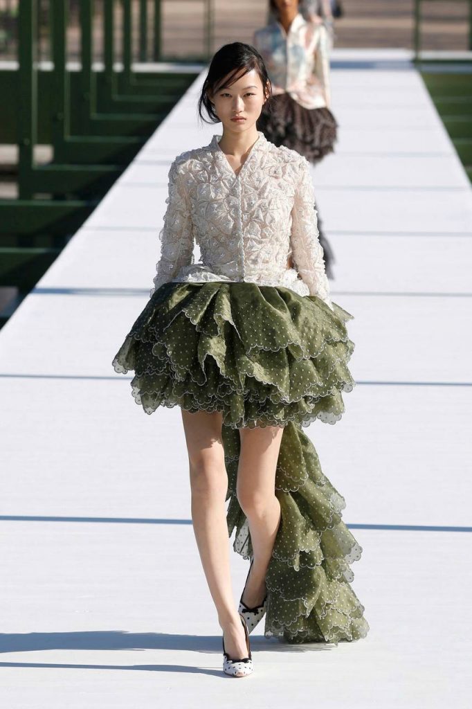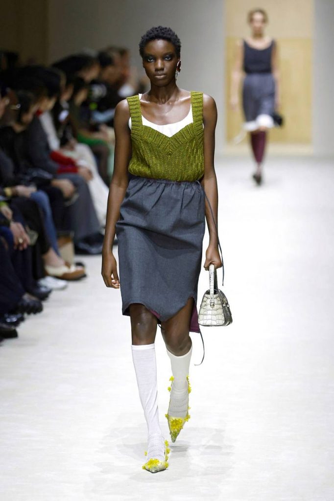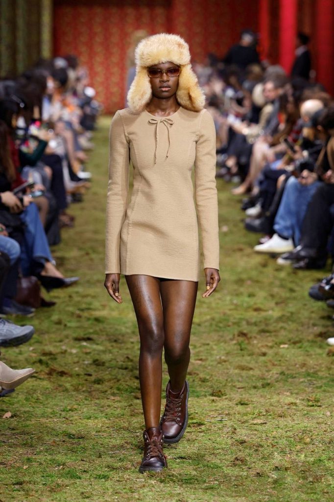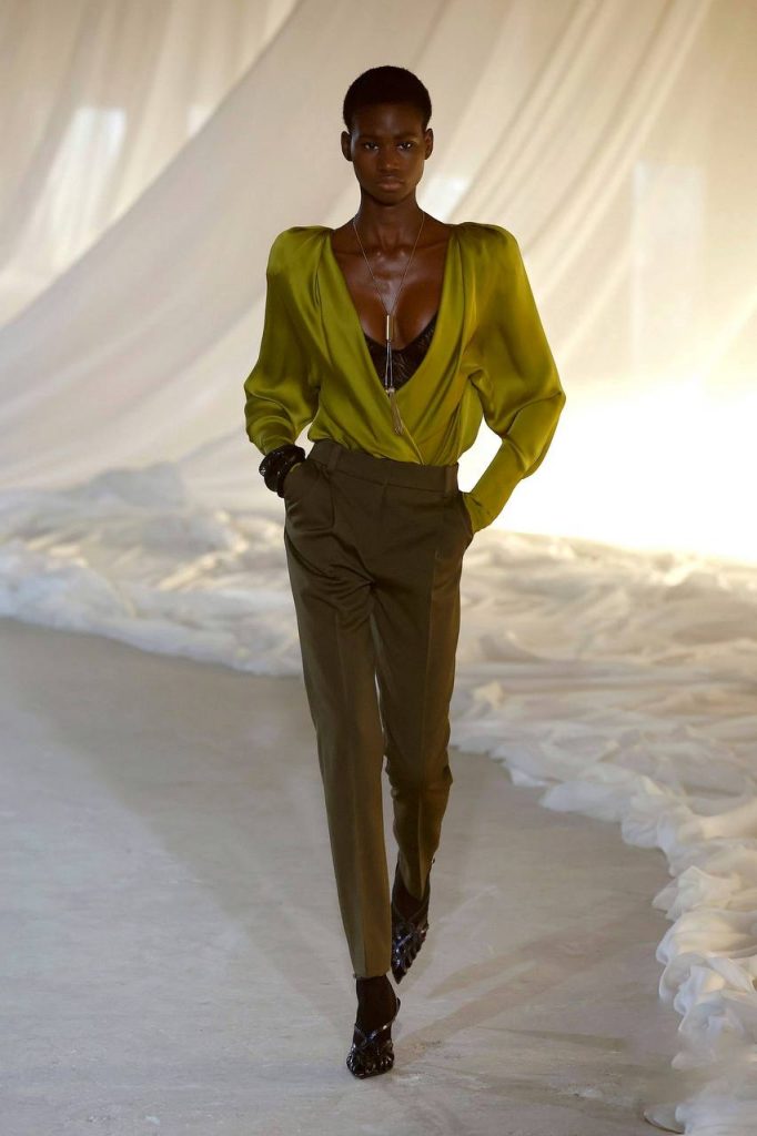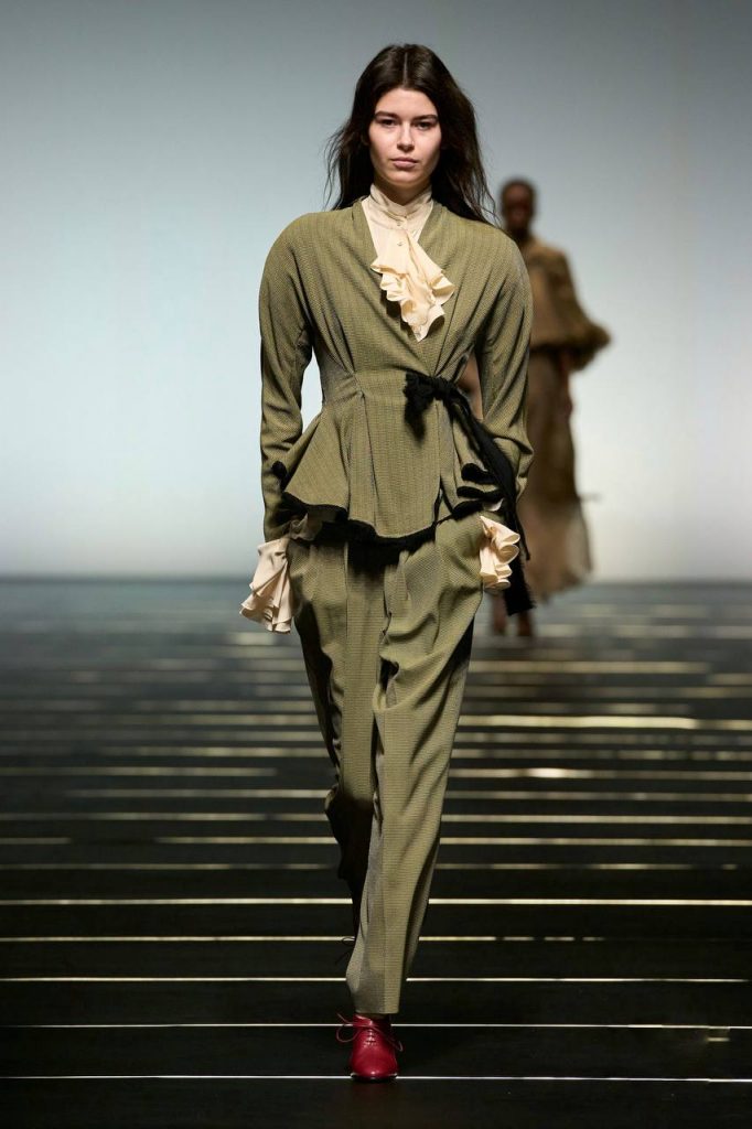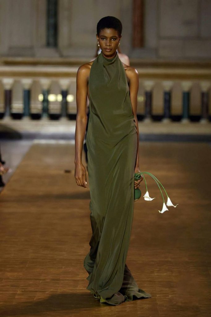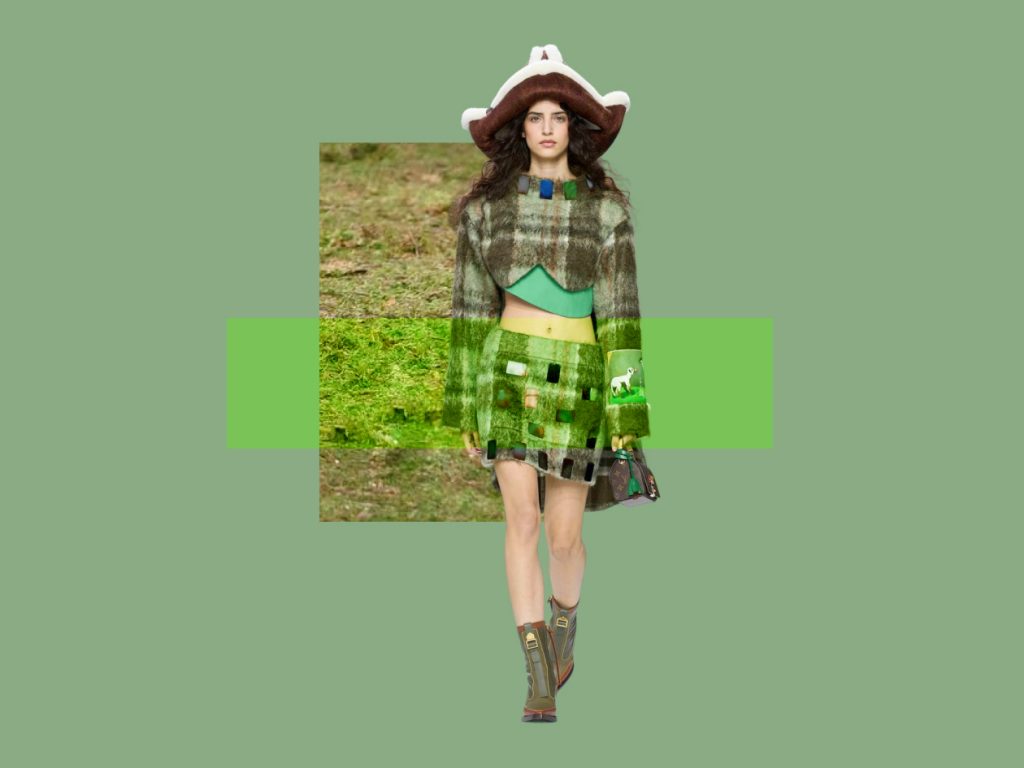 Этот цвет уже уверенно закрепился в коллекциях крупных Домов – от Balenciaga до Prada – и быстро перекочевал в повседневные образы. Его носят тотал-луками, добавляют через аксессуары или используют как базу, сочетая с черным, серым и бежевым. И неожиданно именно в своей «землистости» он выглядит максимально благородно. Отдельный интерес вызывает то, что «мох» в этом сезоне вышел за пределы одежды и буквально захватил сами подиумы. На показах Miu Miu, Hermès и Louis Vuitton сценографии были оформлены с использованием растений, что превращало пространство в подобие живого ландшафта. В результате мох стал не только цветом, но и полноценной частью модного нарратива.
