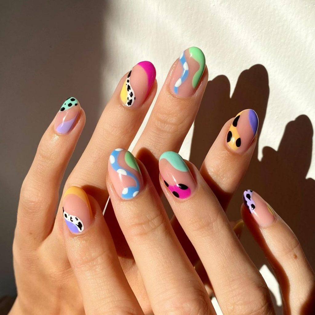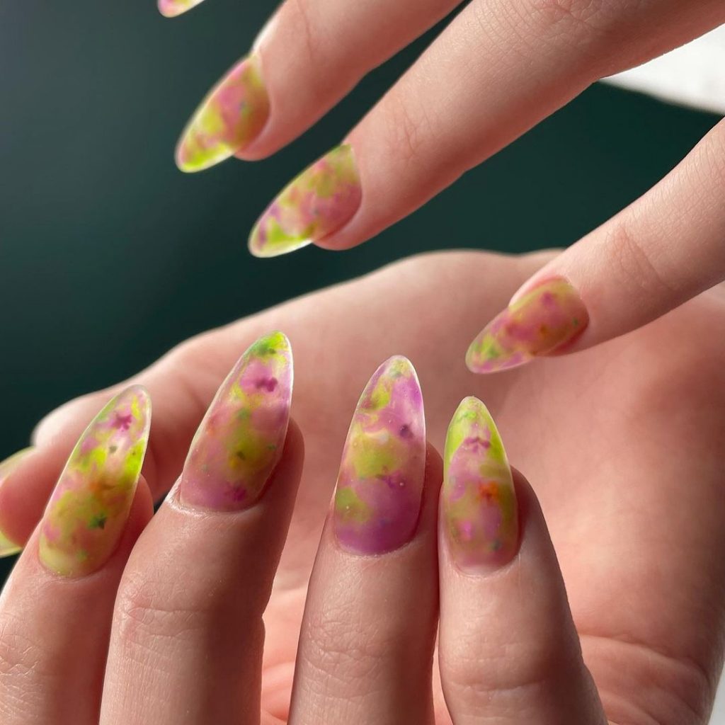 Животный принт и разноцветный френч: 30 идей весеннего маникюра на миндальную форму ногтей