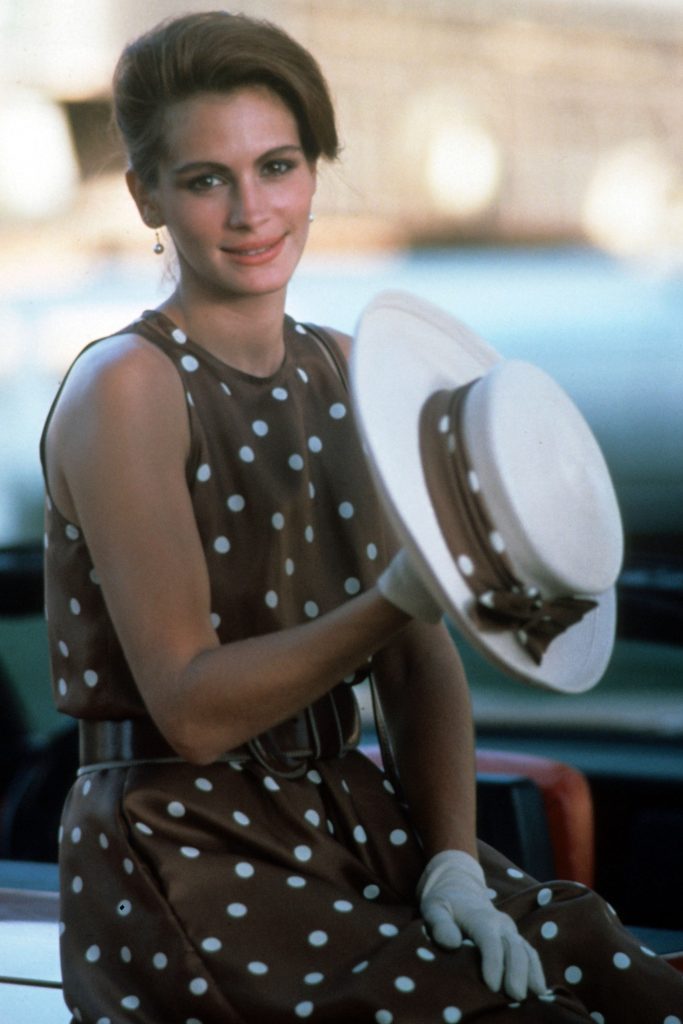 Тот самый «горошек» шился для Джулии Робертс с нуля, а ткань для него подбирала лично Мэрилин Вэнс, нашедшая нужный вариант в винтажном магазине. К слову, изначально платье задумывалось до щиколоток, но не хватило материала: «В первом случае образ мы дополнили бы балетками Chanel». Кто знает, стало бы оно тогда культовым?