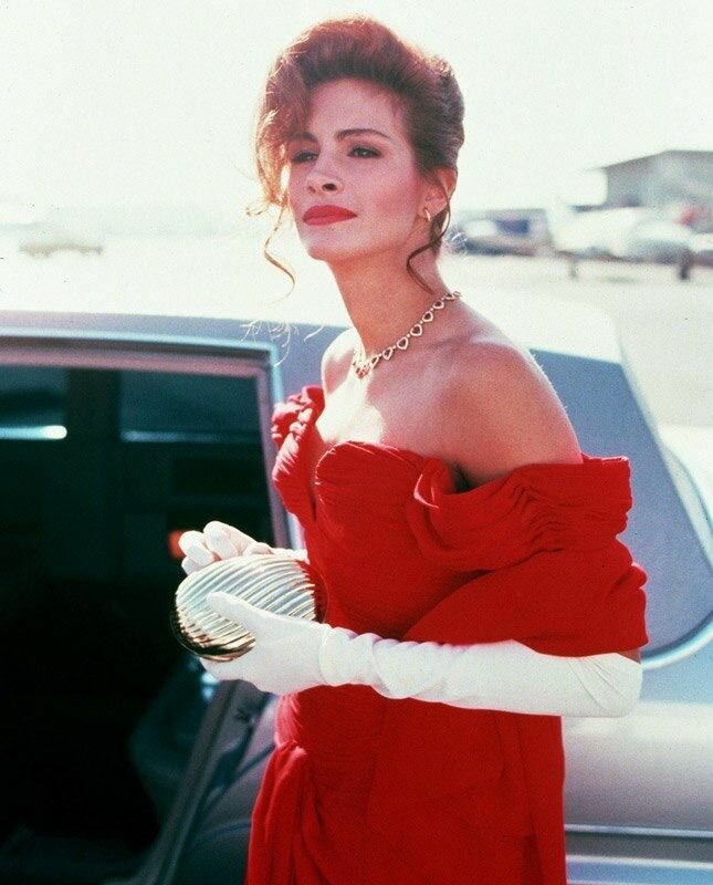 Сейчас «Красотка» немыслима без этого красного платья, но в свое время оно могло так и не дойти до Джулии Робертс. Мэрилин Вэнс рассказывала, что Гэрри Маршалл настаивал на черном цвете и пышном бальном фасоне, и за финальный вариант ей пришлось бороться: «Мы создали три разных платья: брали каждый цвет, освещали его и делали тестовые снимки. Бедная Джулия! Сколько ей пришлось делать цветовых проб ради одного платья». Вышло ли «то самое»? Однозначно.