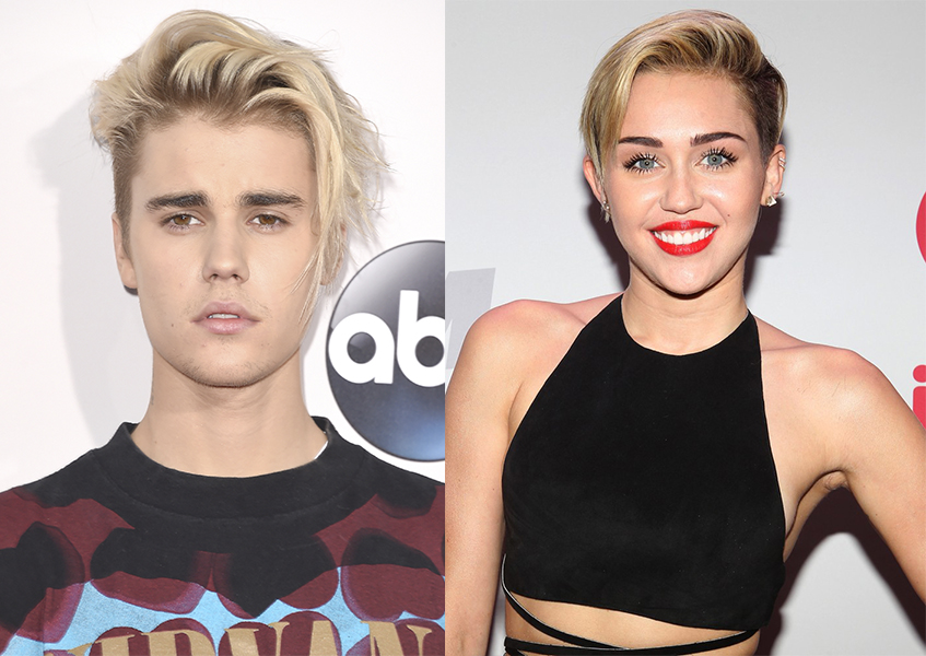 Музыкант Джастин Бибер (21) и певица Майли Сайрус (23)