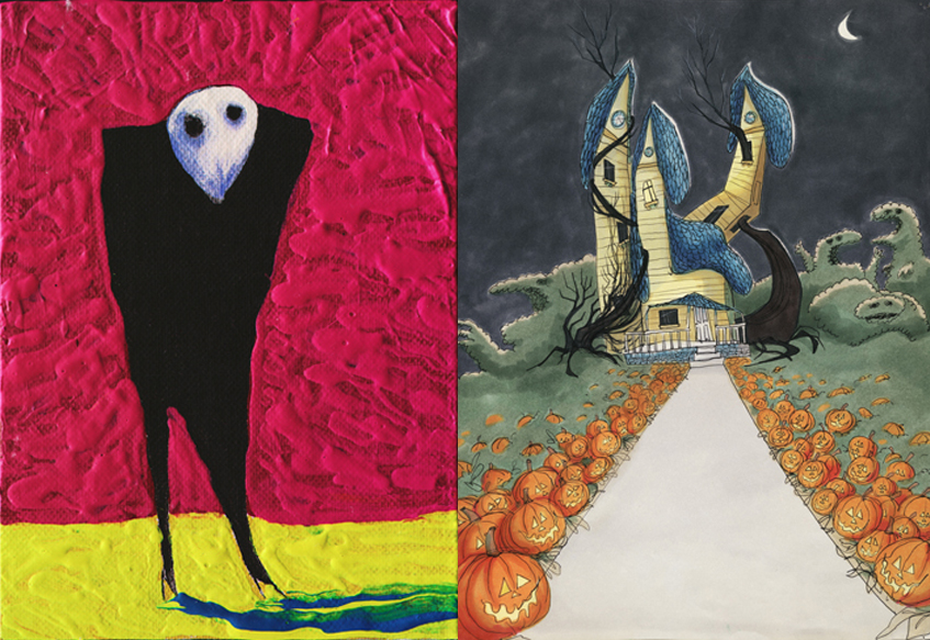 Однако в коллекции Тима также имеются и полноценные картины, написанные маслом. Несмотря на то что для них Бёртон использует абсолютно иные материалы, чем для работы со скетчами, стиль режиссера остается абсолютно узнаваемым. Немного пугающий, но завораживающий, он давно знаком всем ценителям драматических бёртоновских мультфильмов и хорроров.